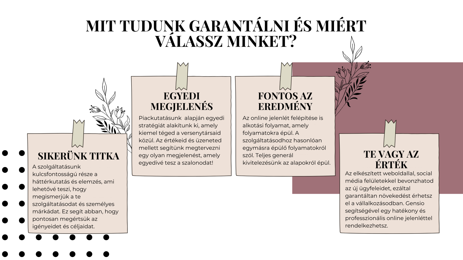Az online hirdetések hatékonyak lehetnek, ha jól vannak kezelve. Segítünk megtervezni és végrehajtani a hirdetési stratégiádat, optimalizáljuk a költségeket, és gondoskodunk róla, hogy a hirdetéseid a megfelelő közönséghez jussanak el. Így minden befektetett forintot megtérülő eredményekben láthatsz viszont.