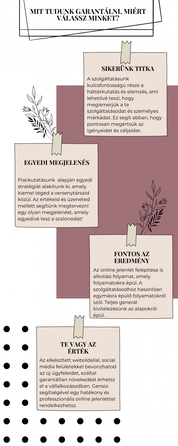 Személyre szabott, professzionálisan megtervezett weboldalakat készítünk, melyek nem csak esztétikusan vonzóak, de a növekedésed és a siker felé vezető útjaidat is kiépítik. Az eredményorientált weboldalunkkal a látogatóidból ügyfeleket, az ügyfeleidből pedig hűséges visszatérő vendégeket varázsolunk.